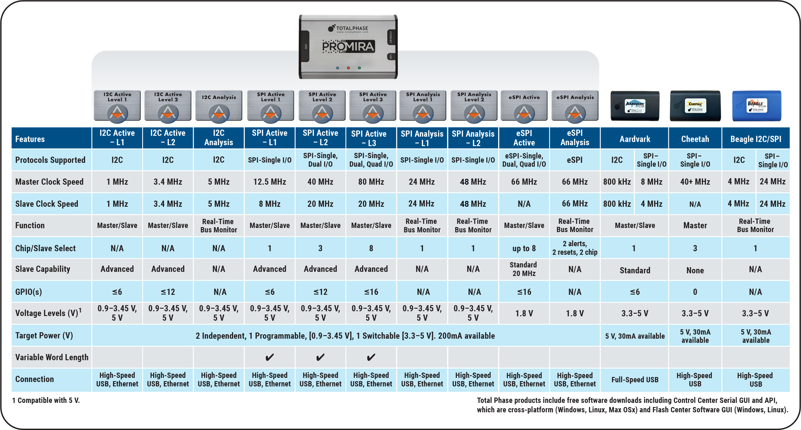 Aardvark, Cheetah, Beagle I2C/SPI(J) と併用して使用します。